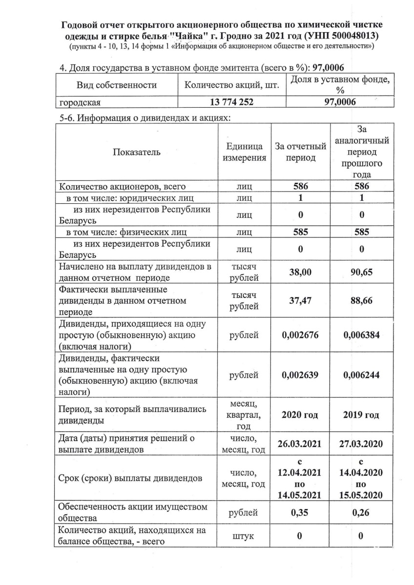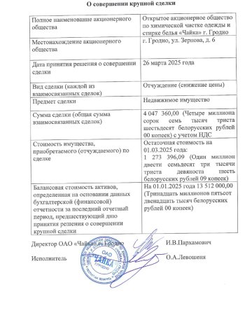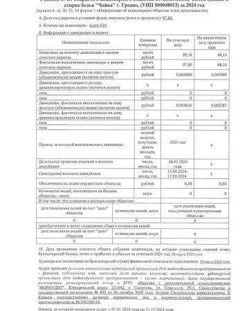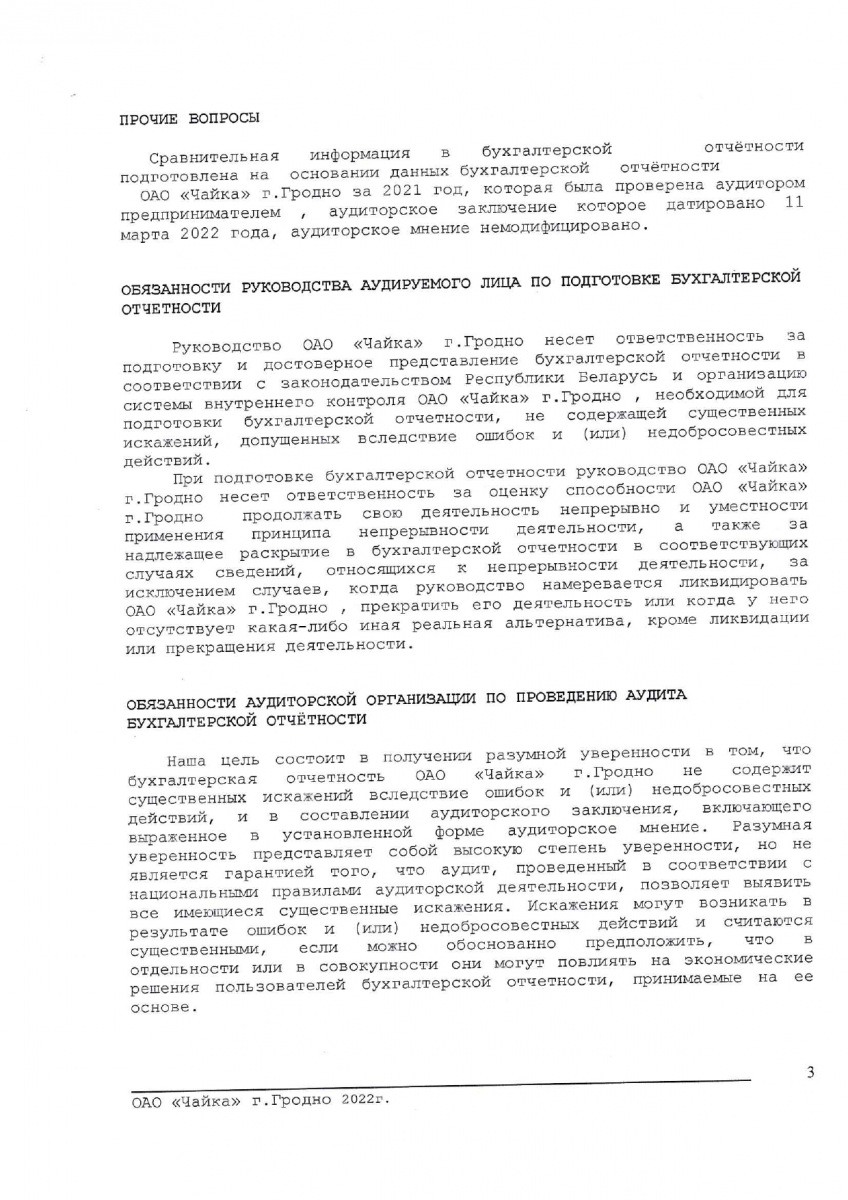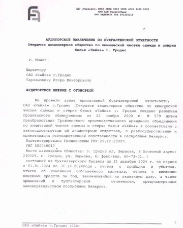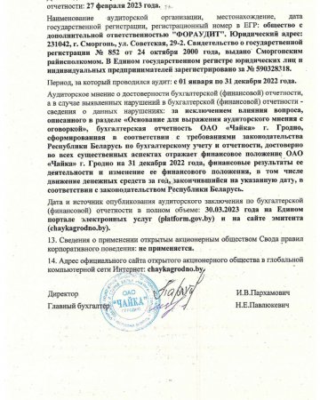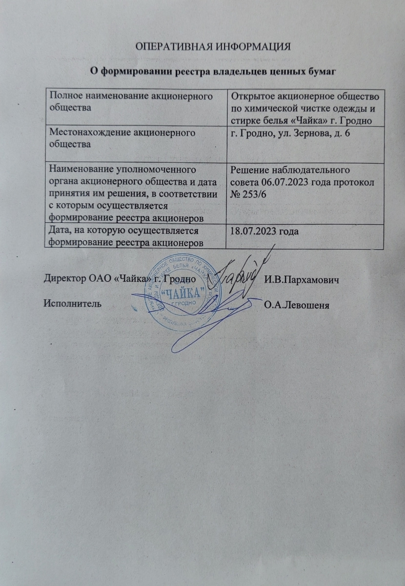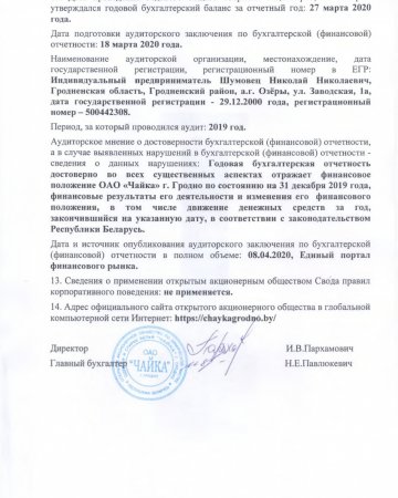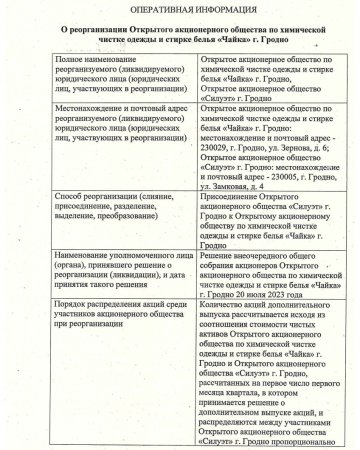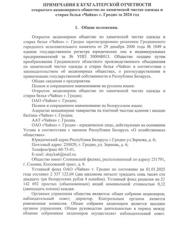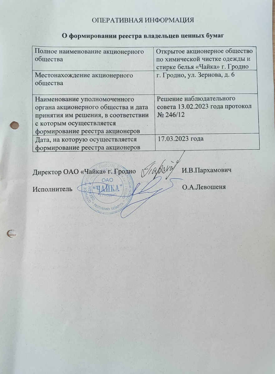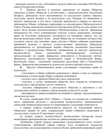 Информация для акционеров ОАО "Чайка" г. Гродно