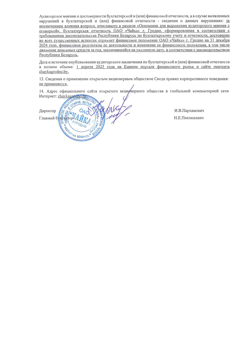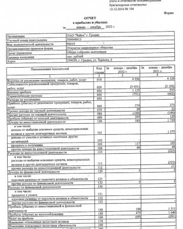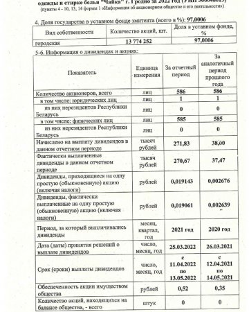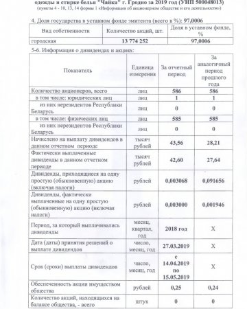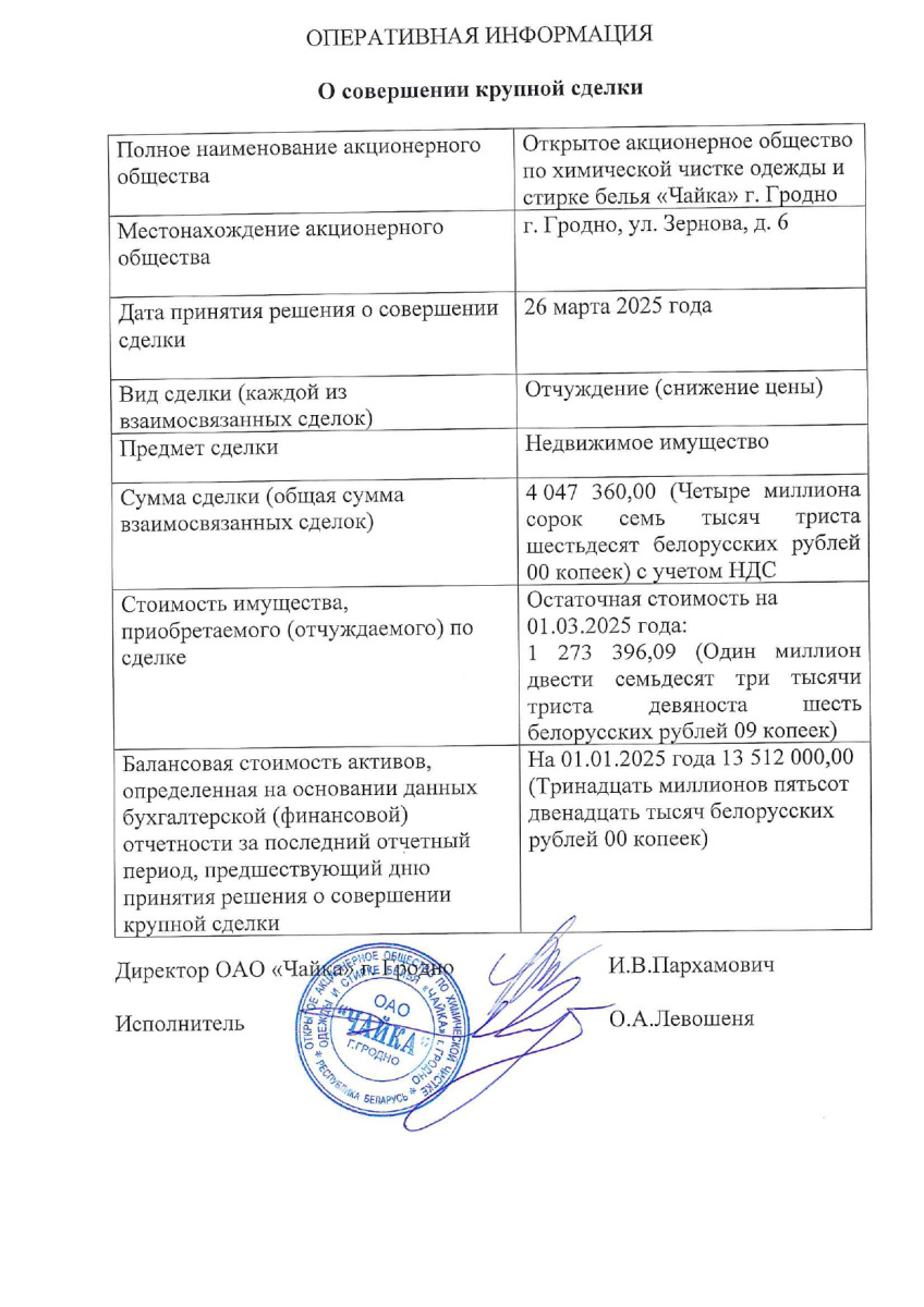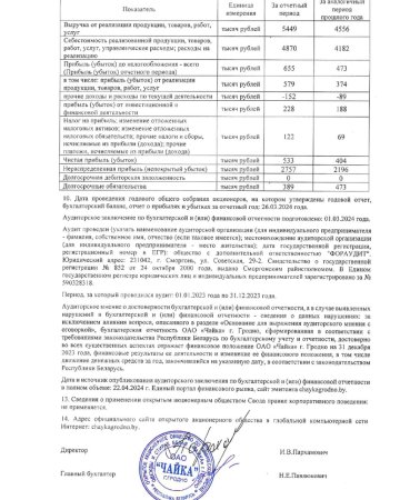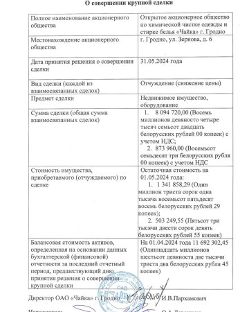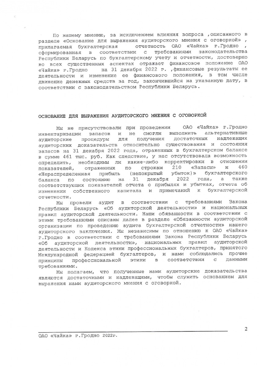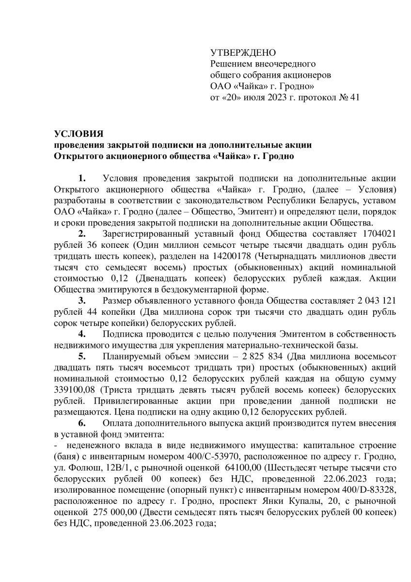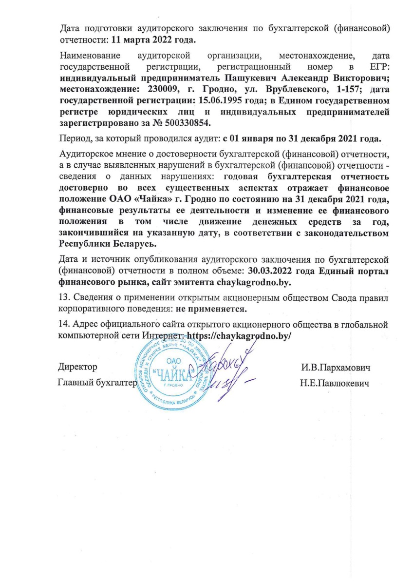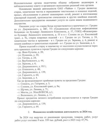 Информация для акционеров ОАО "Чайка" г. Гродно