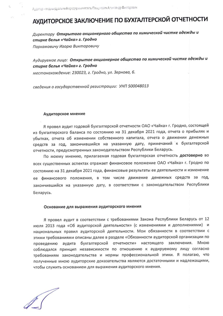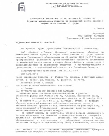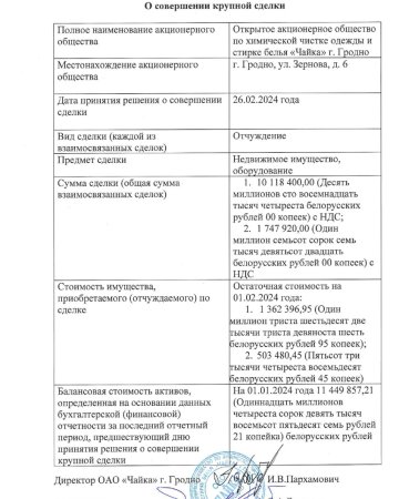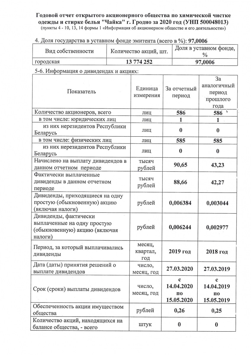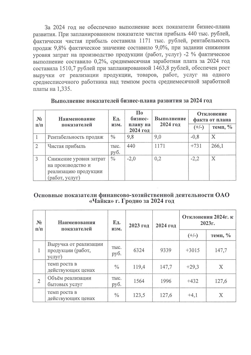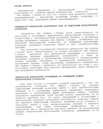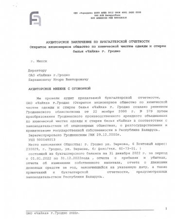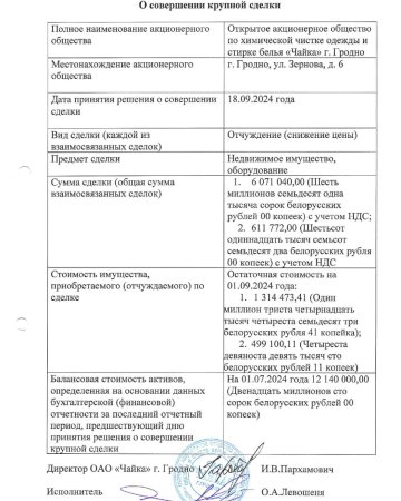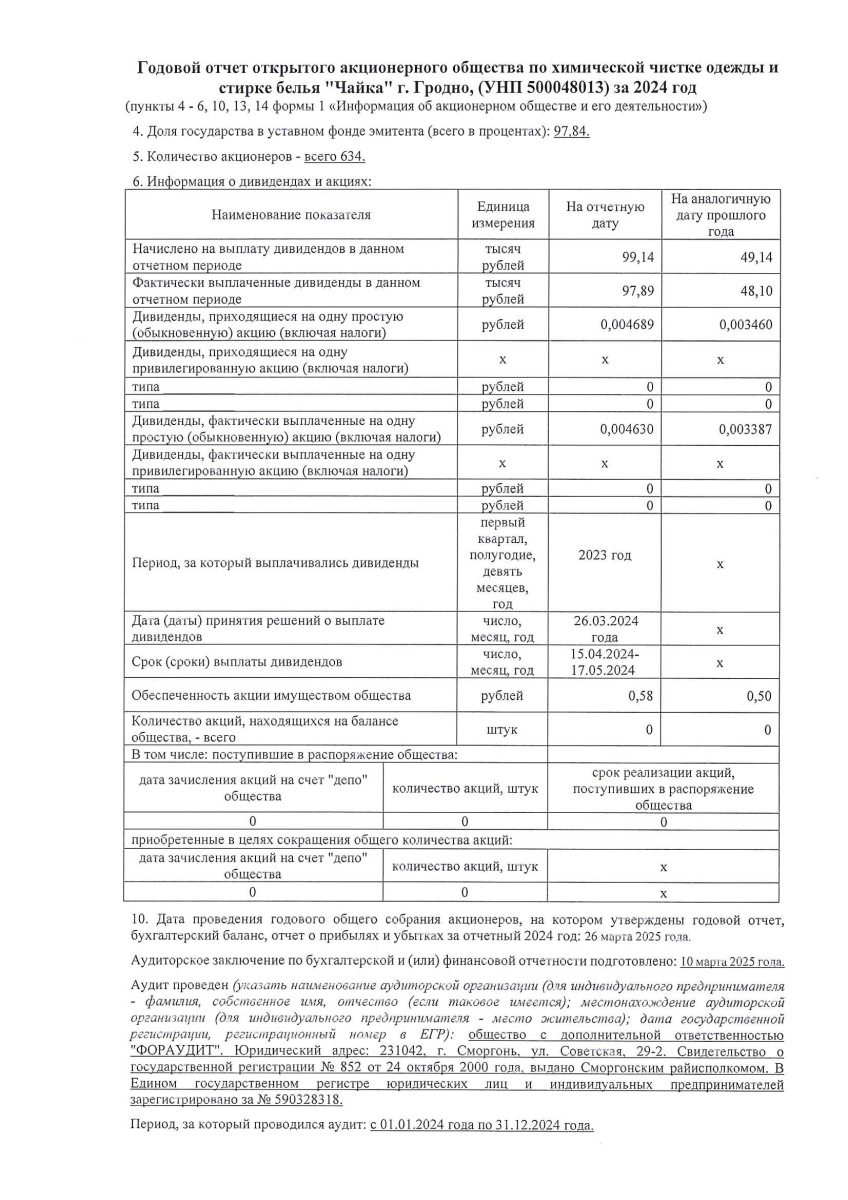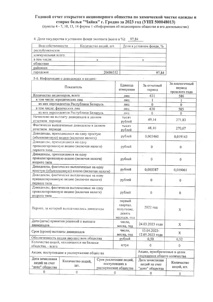 Информация для акционеров ОАО "Чайка" г. Гродно