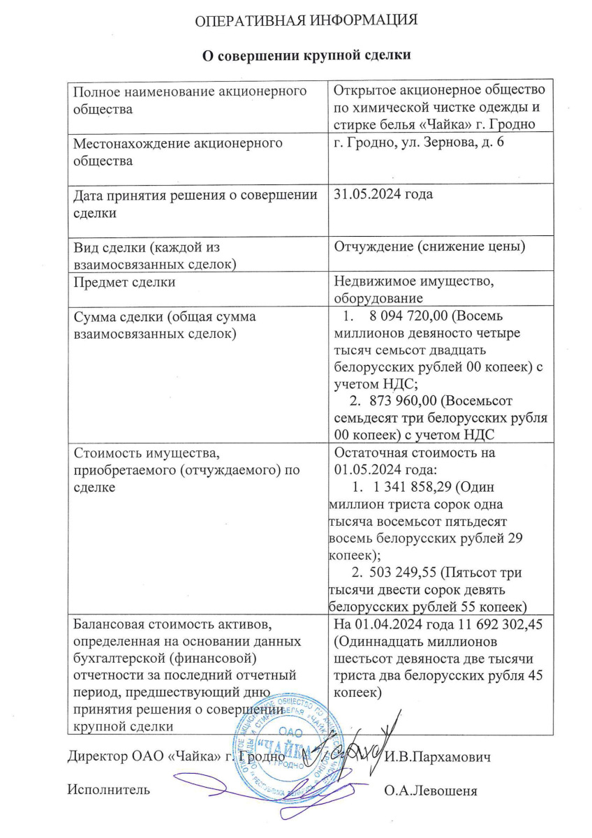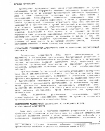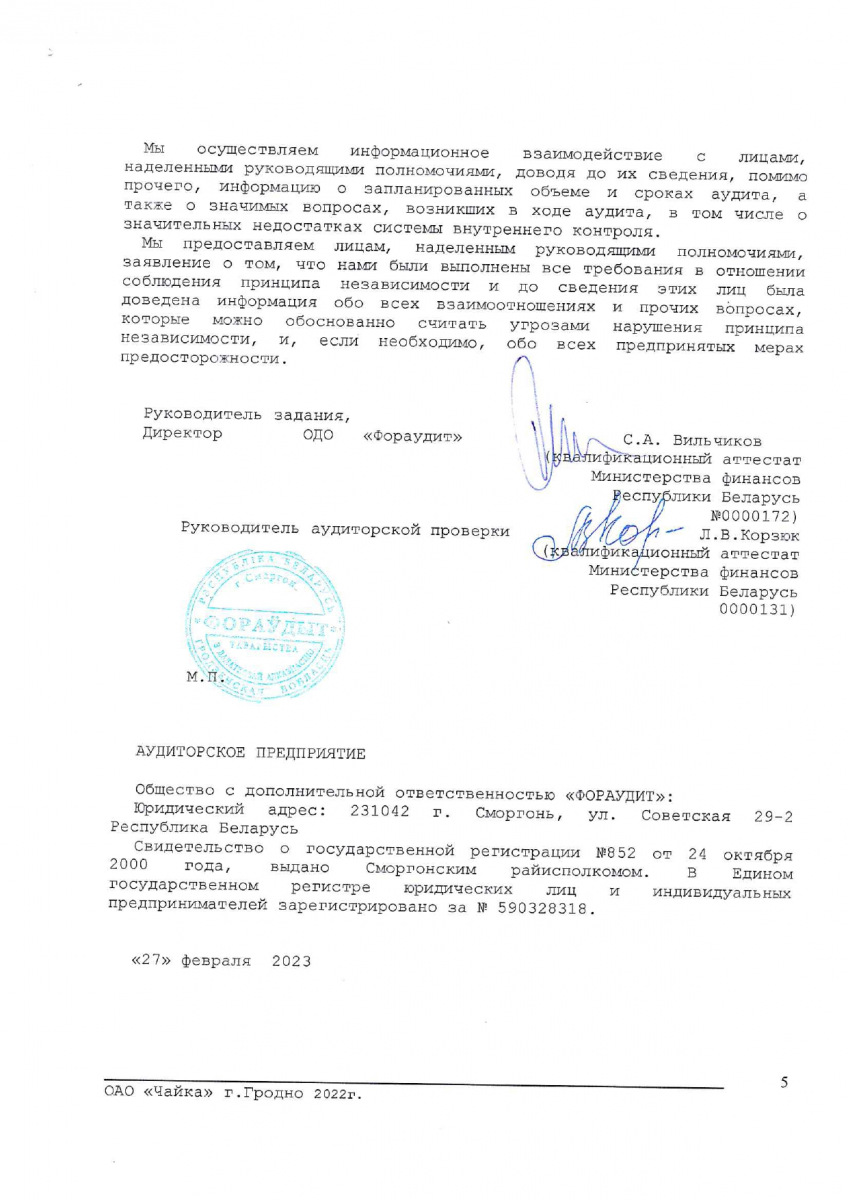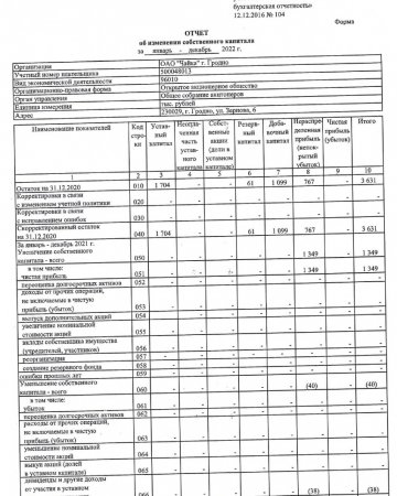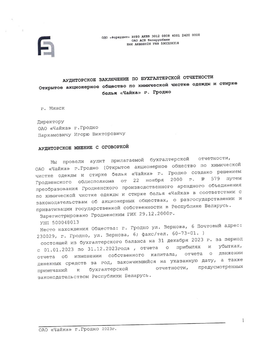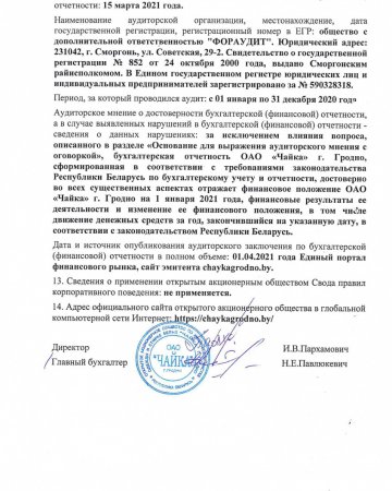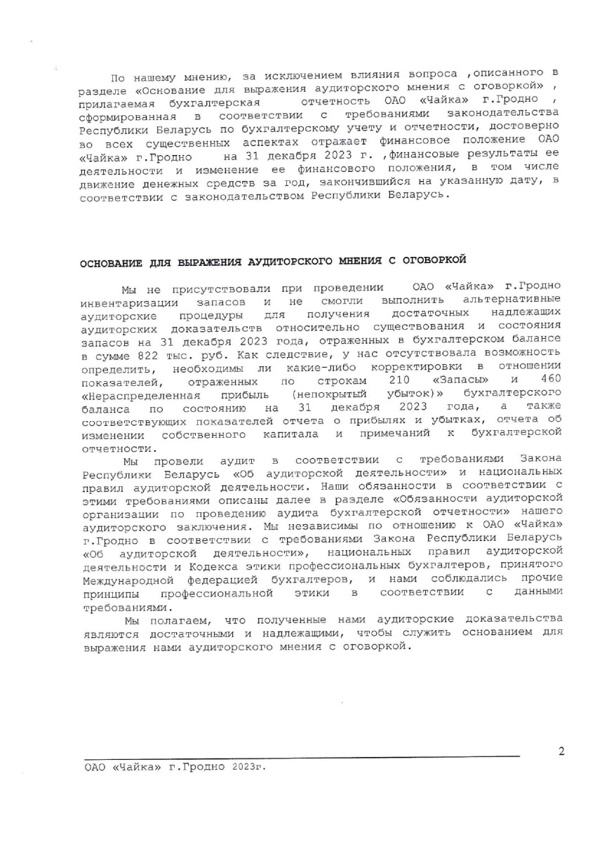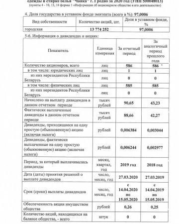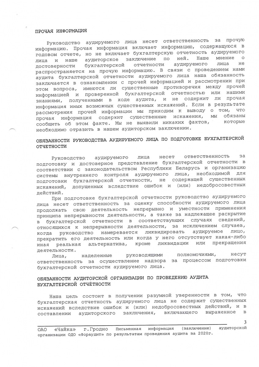 Информация для акционеров ОАО "Чайка" г. Гродно