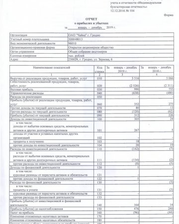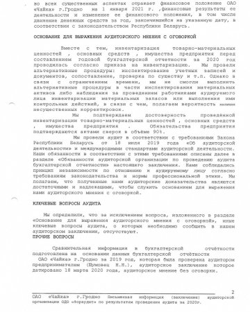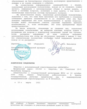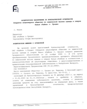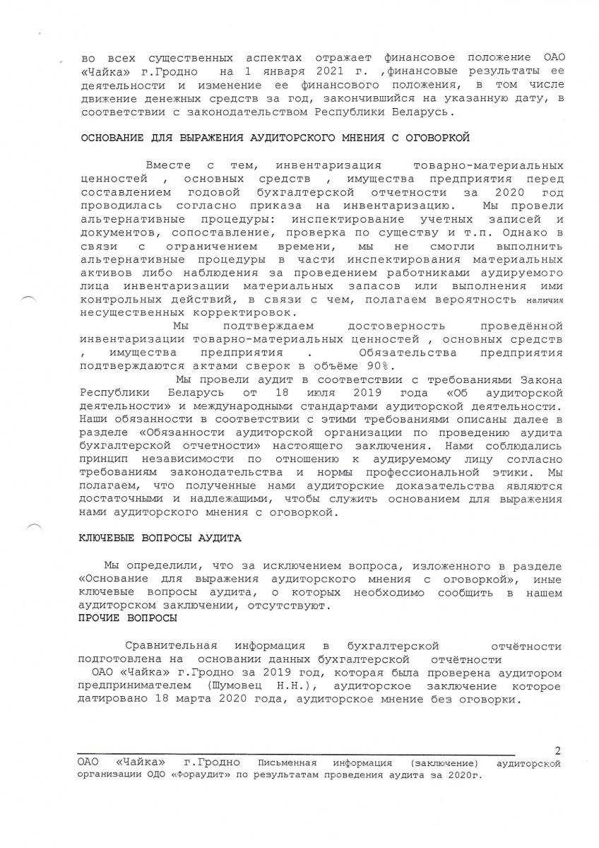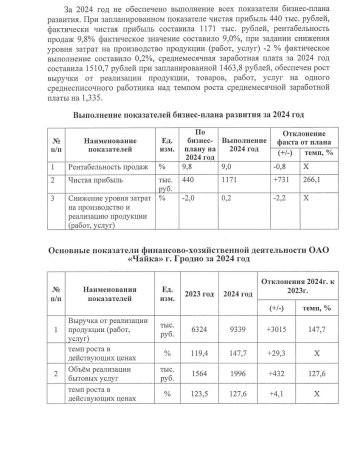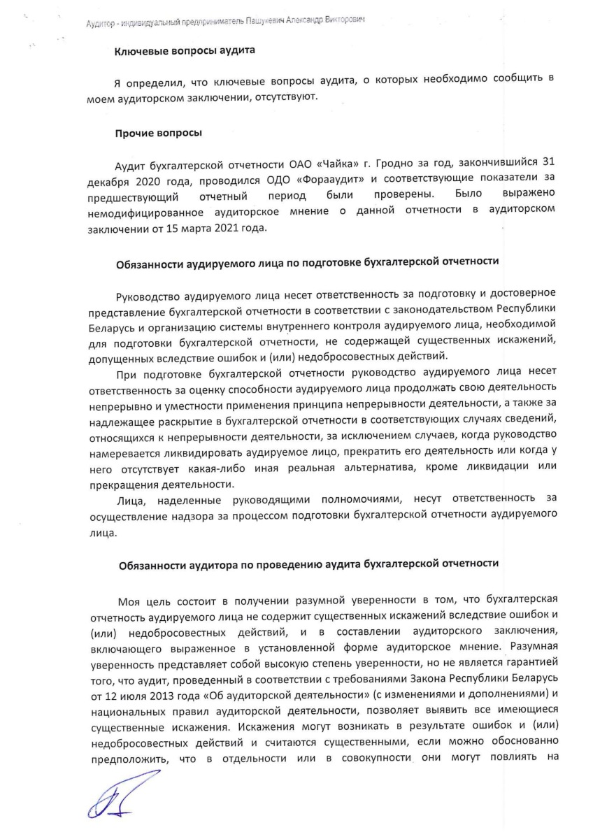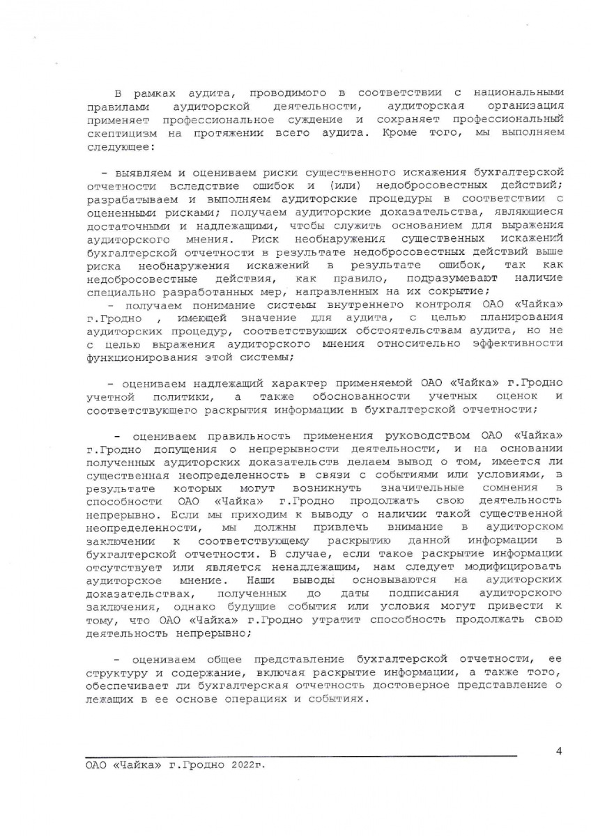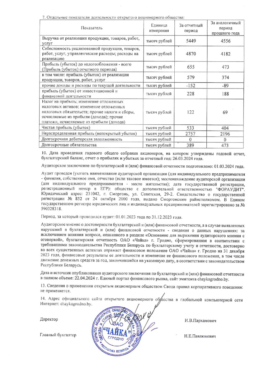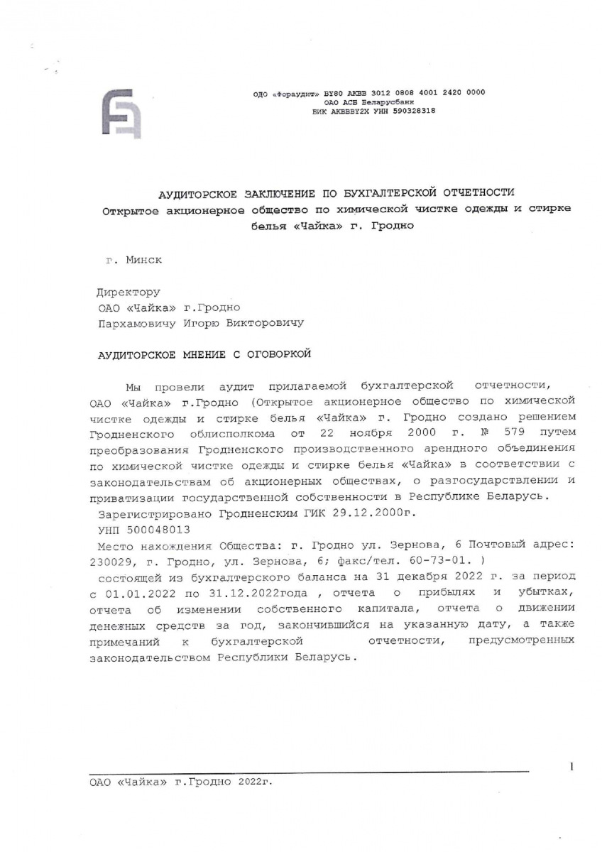 Информация для акционеров ОАО "Чайка" г. Гродно