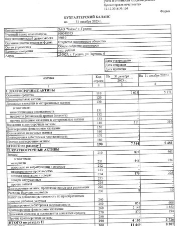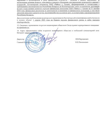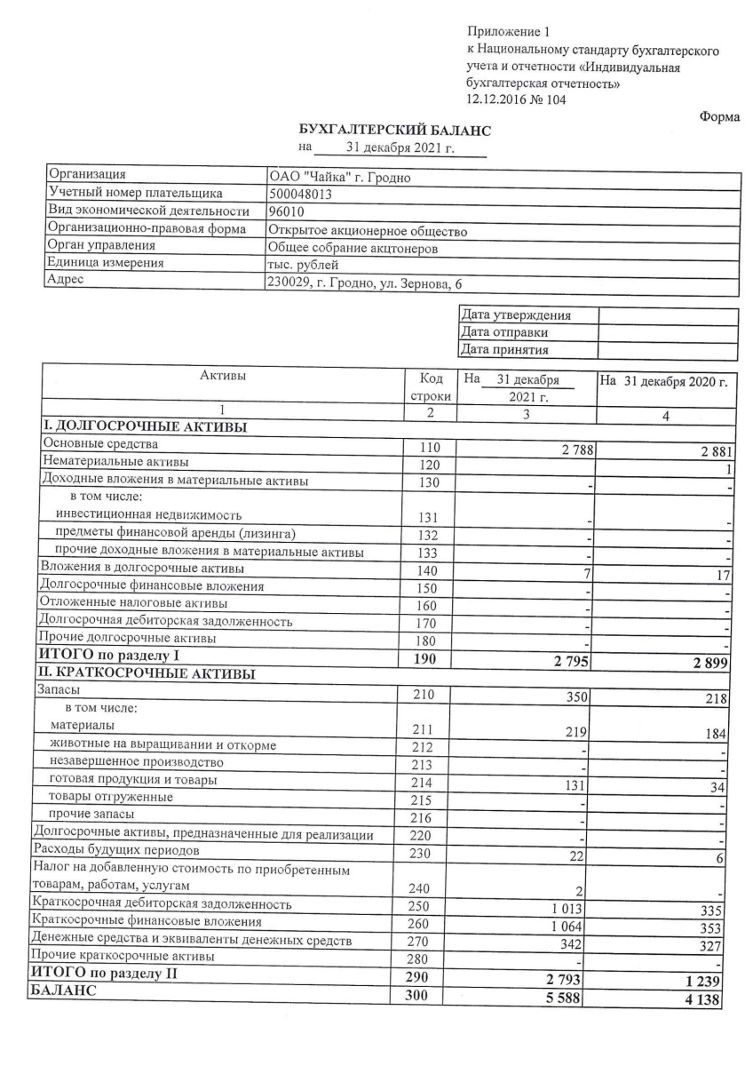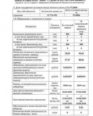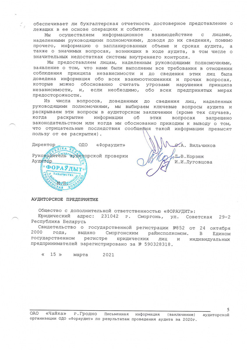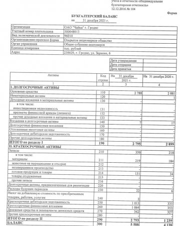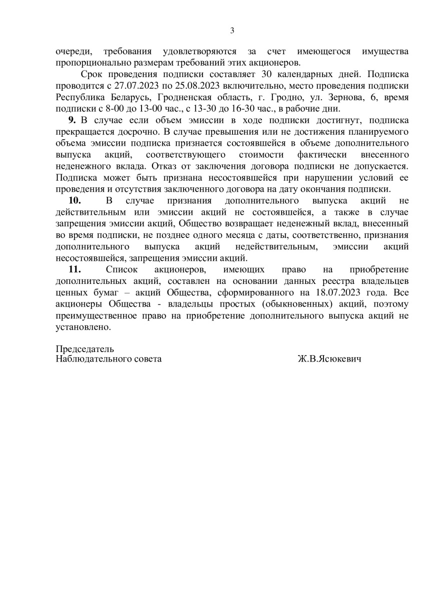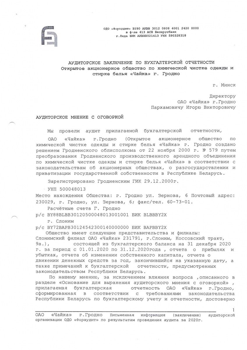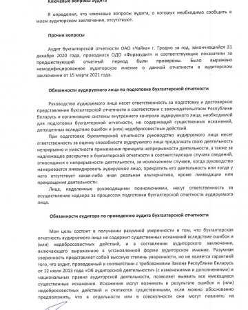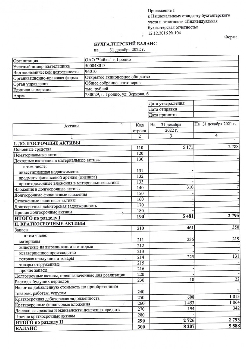 Информация для акционеров ОАО "Чайка" г. Гродно