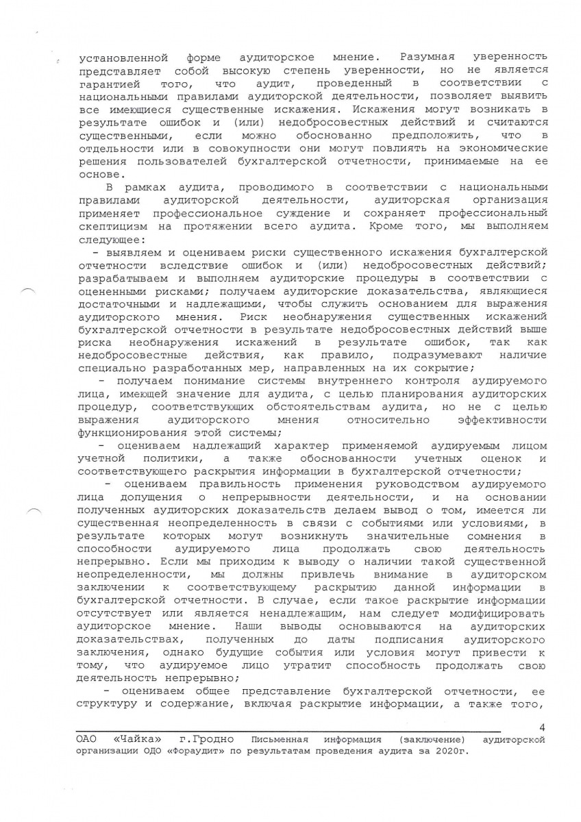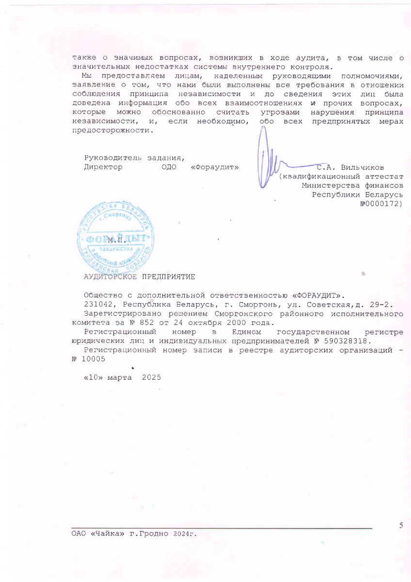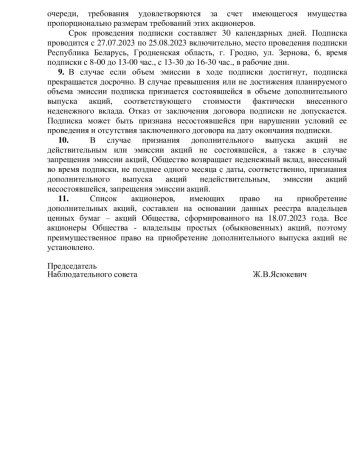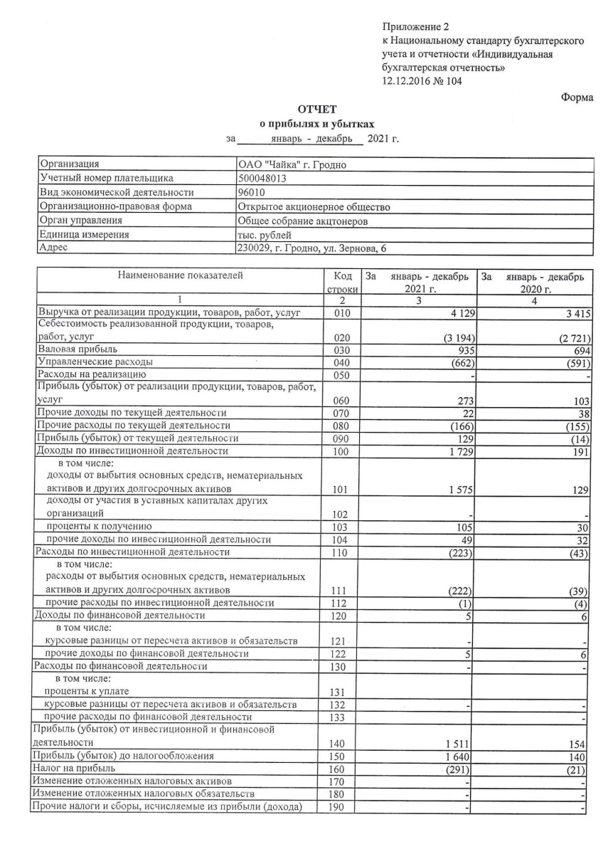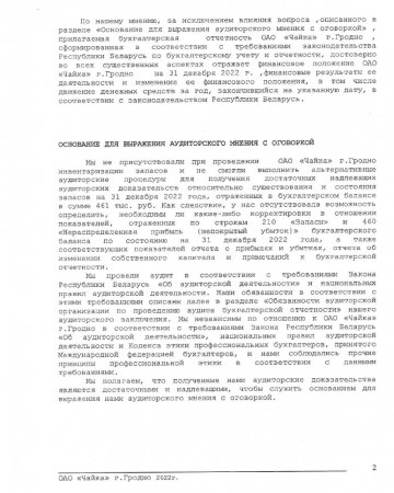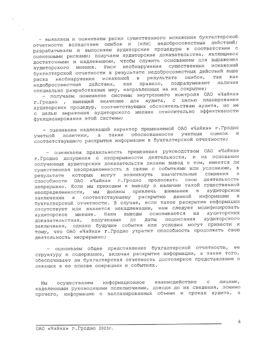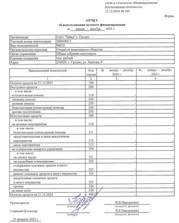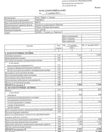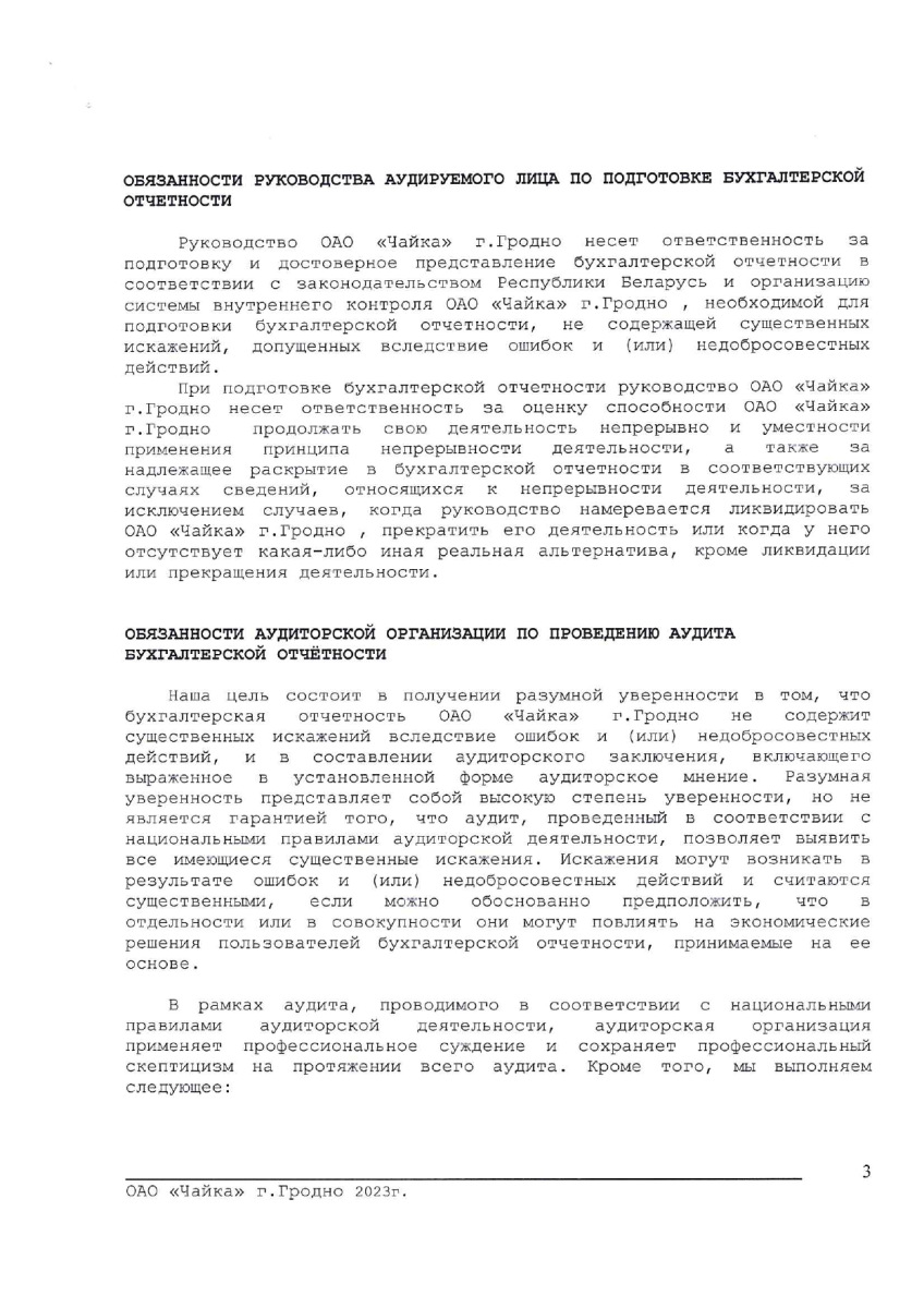 Информация для акционеров ОАО "Чайка" г. Гродно