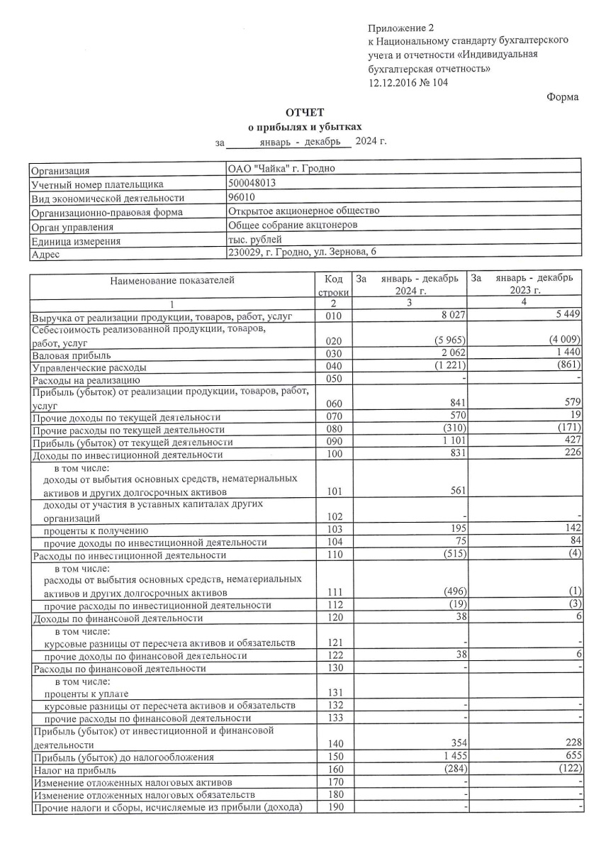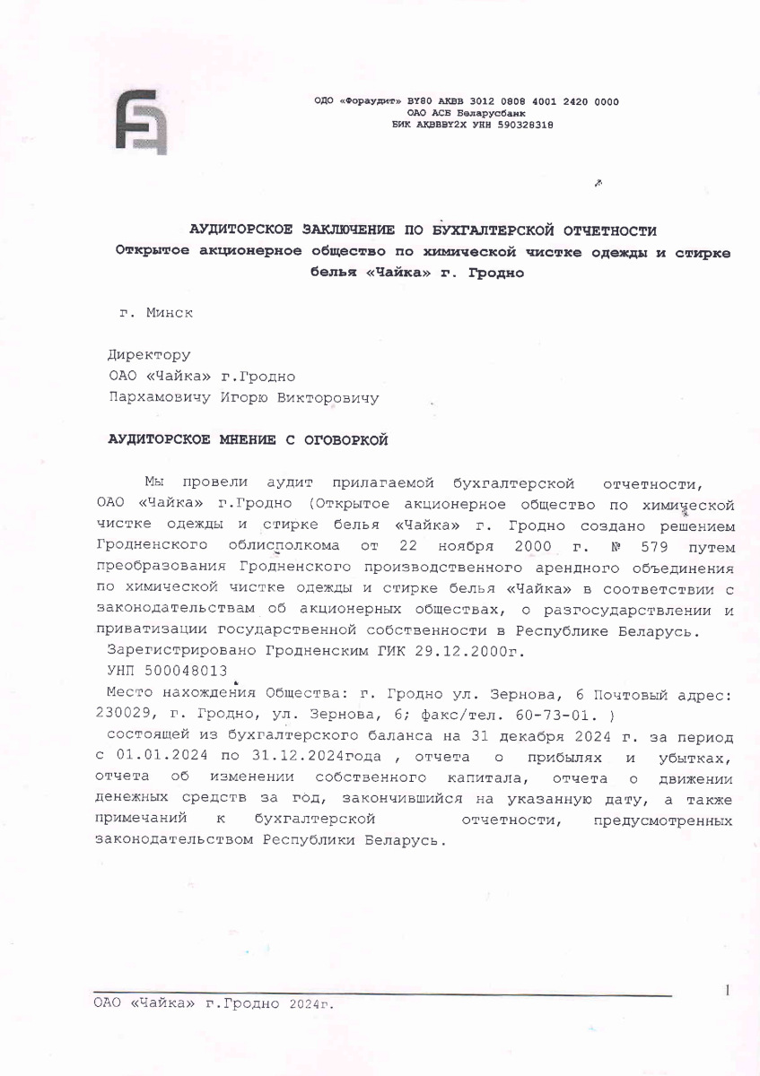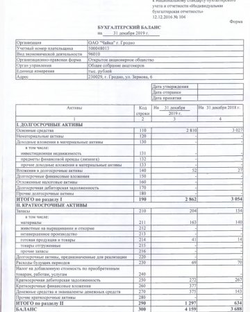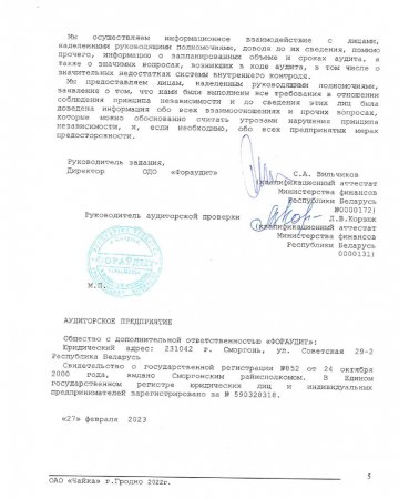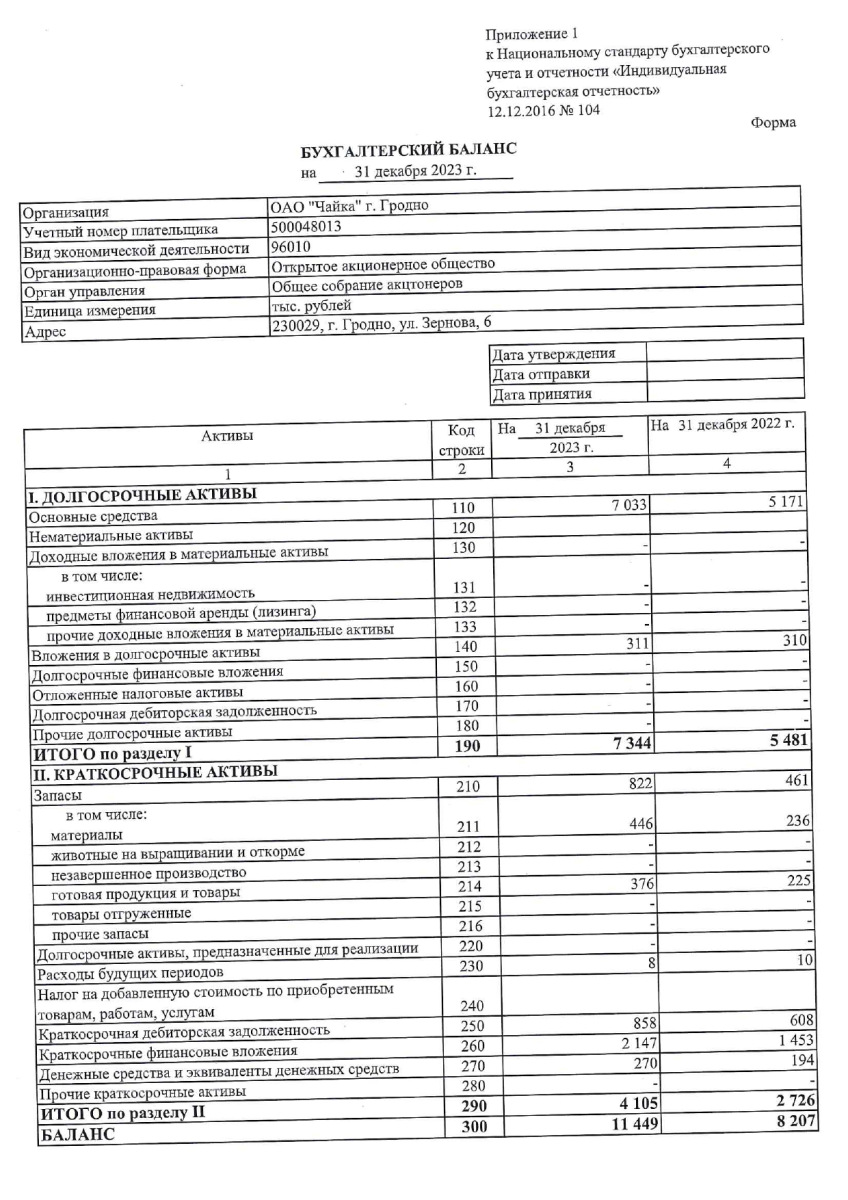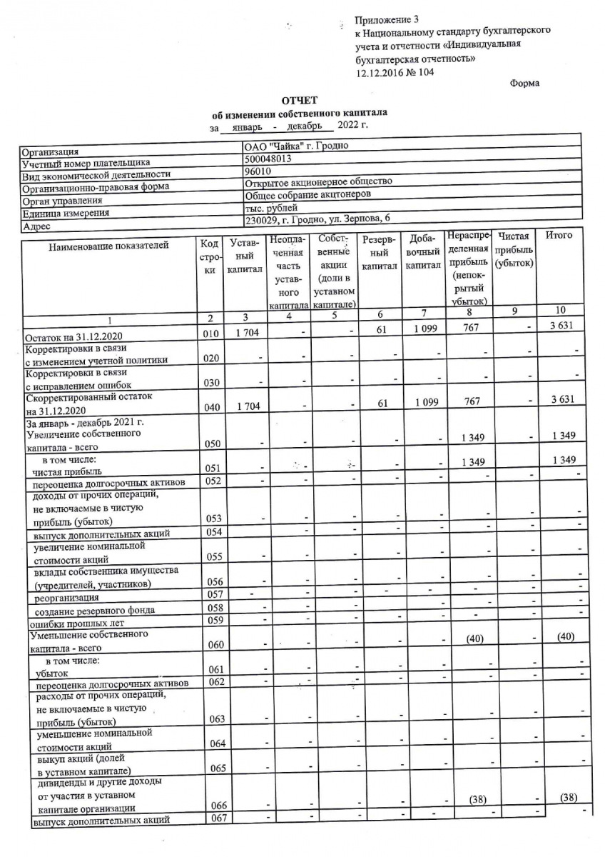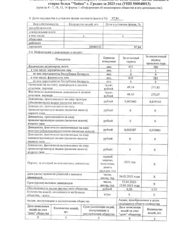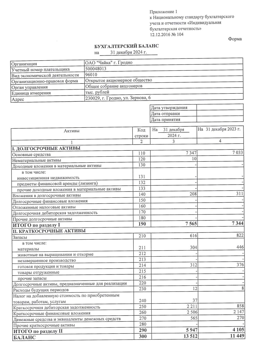 Информация для акционеров ОАО "Чайка" г. Гродно