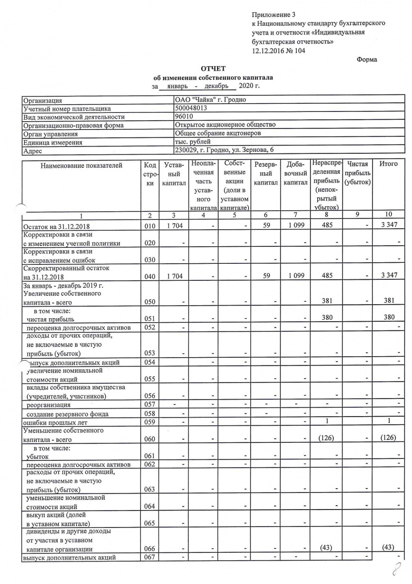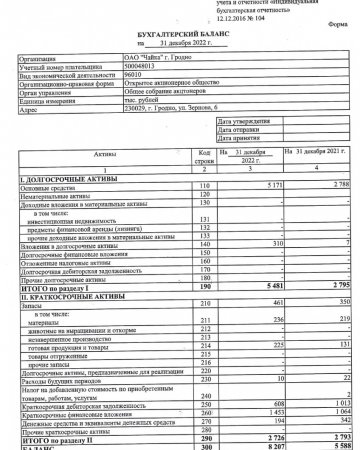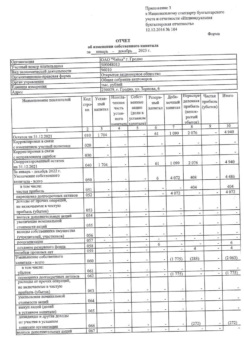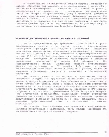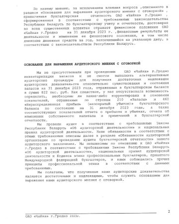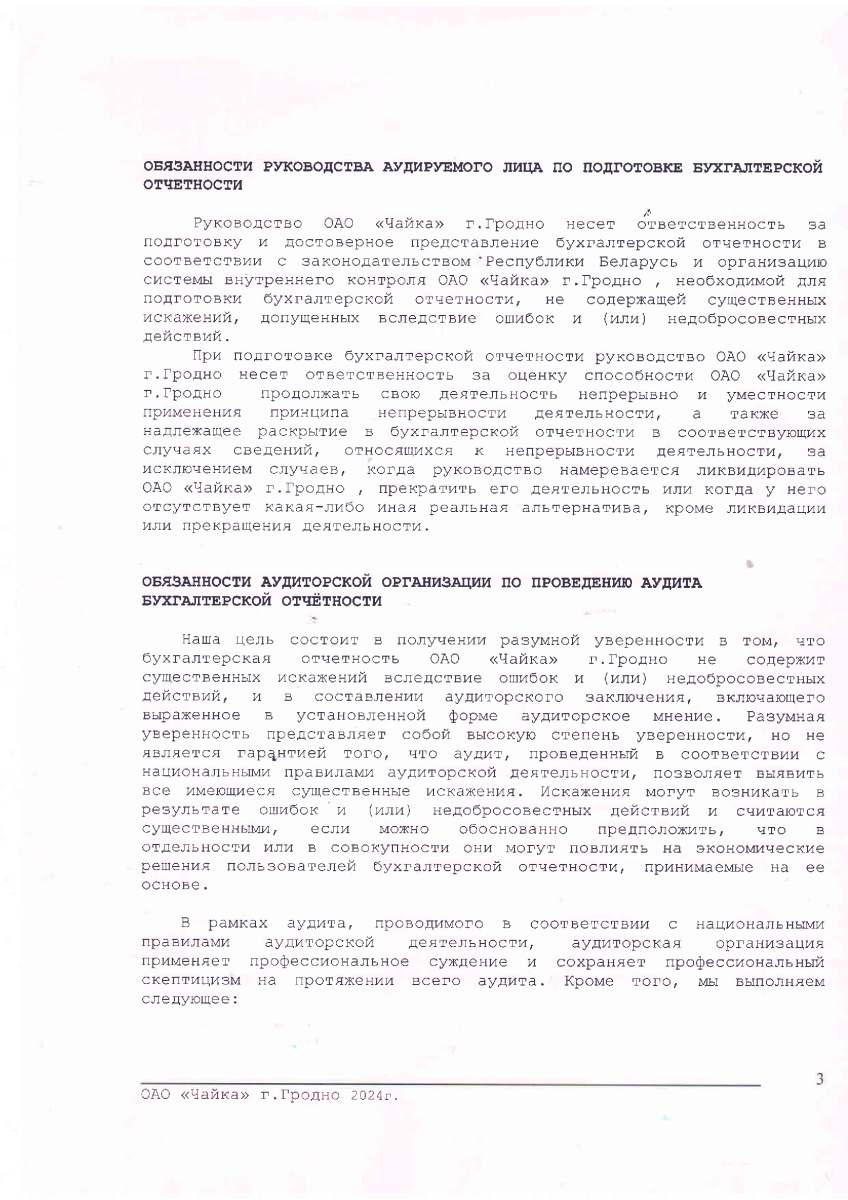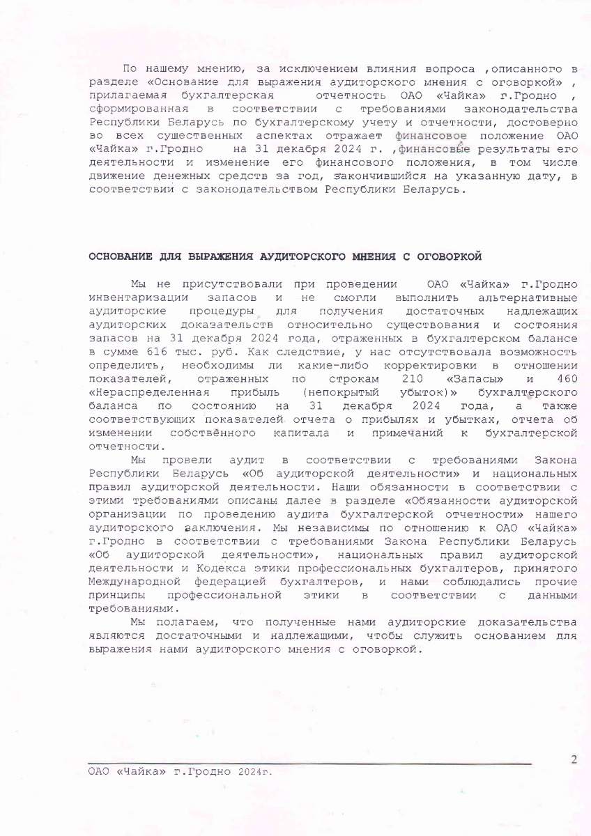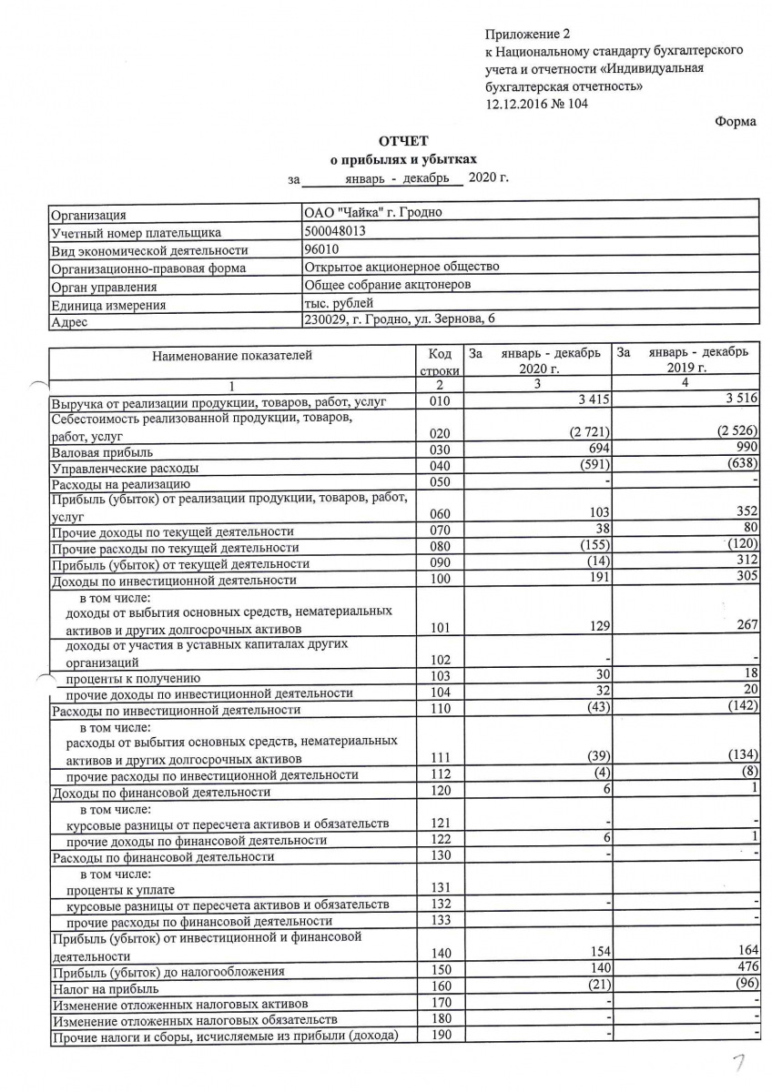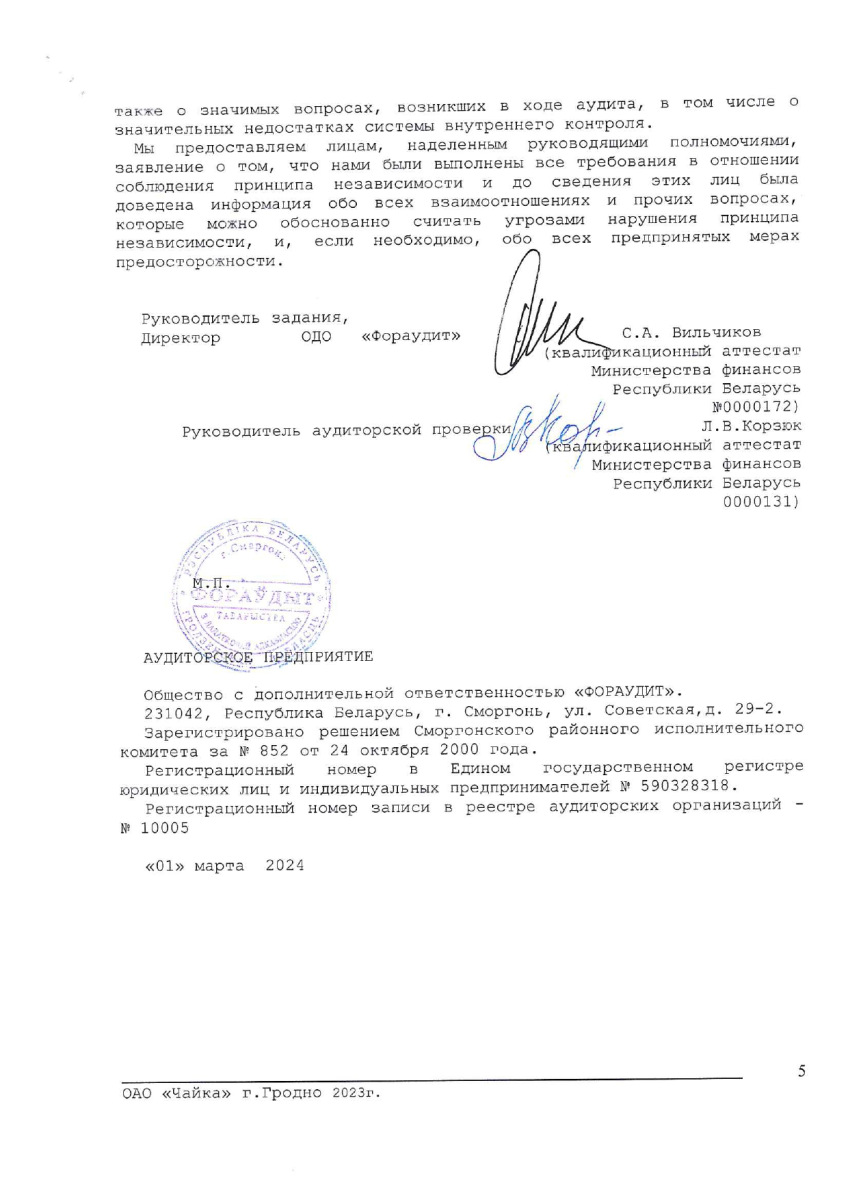 Информация для акционеров ОАО "Чайка" г. Гродно