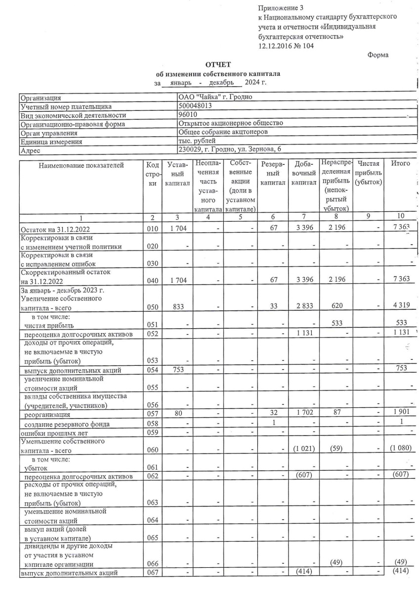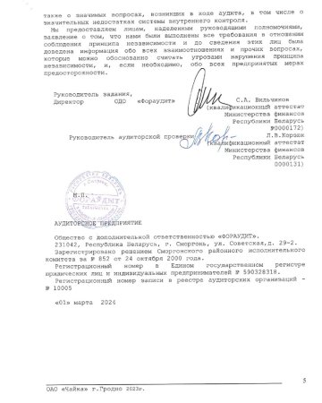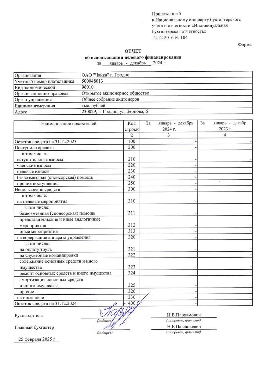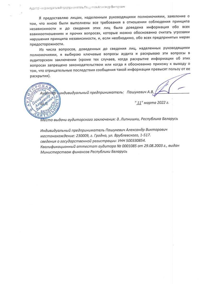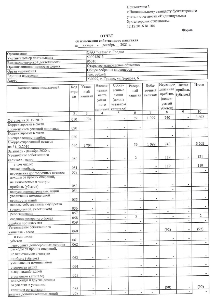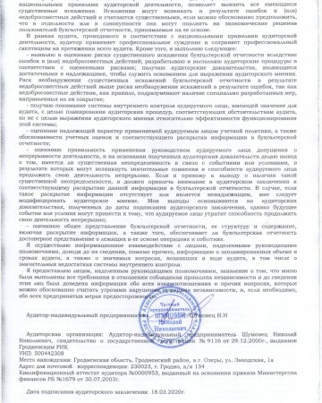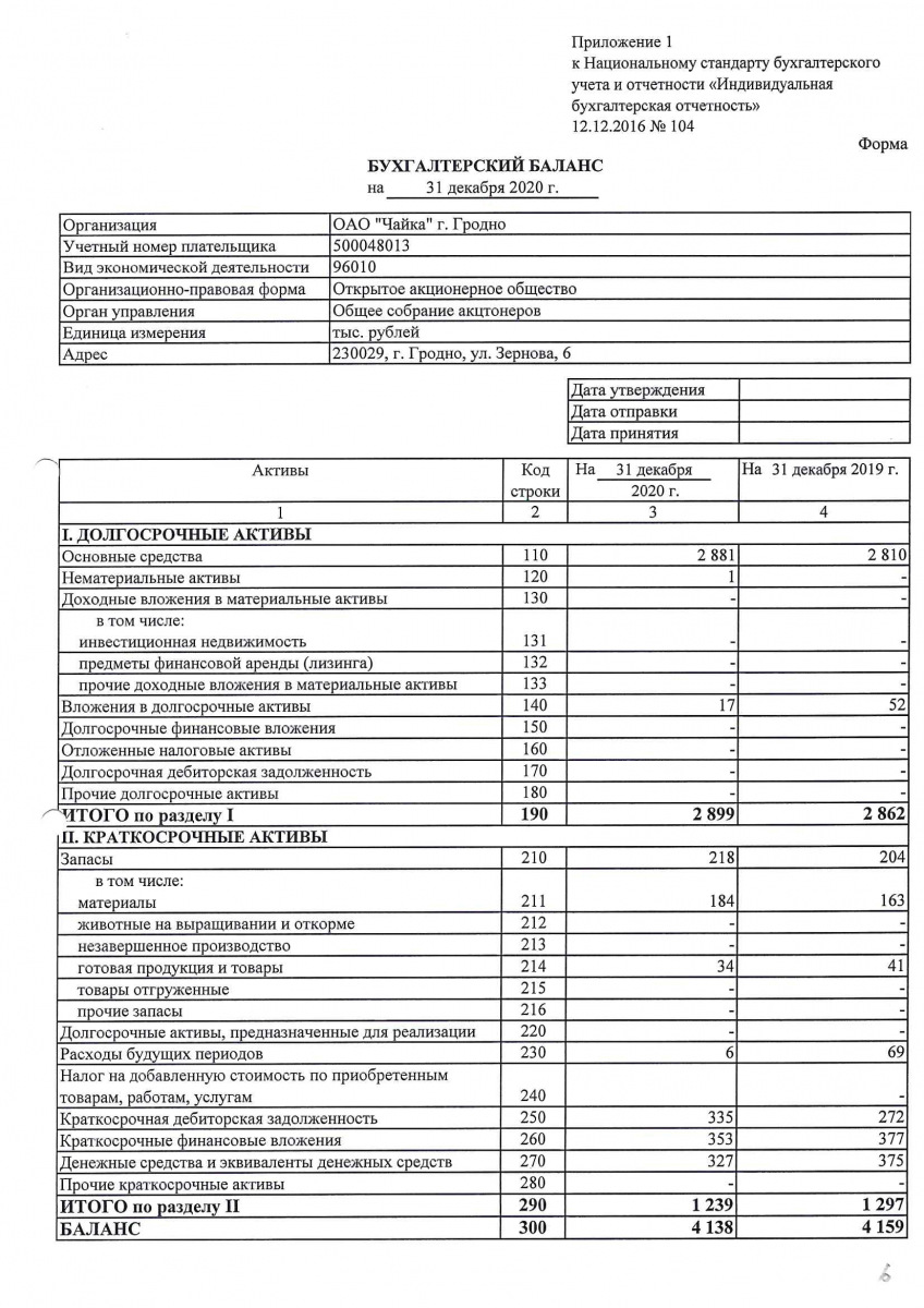 Информация для акционеров ОАО "Чайка" г. Гродно