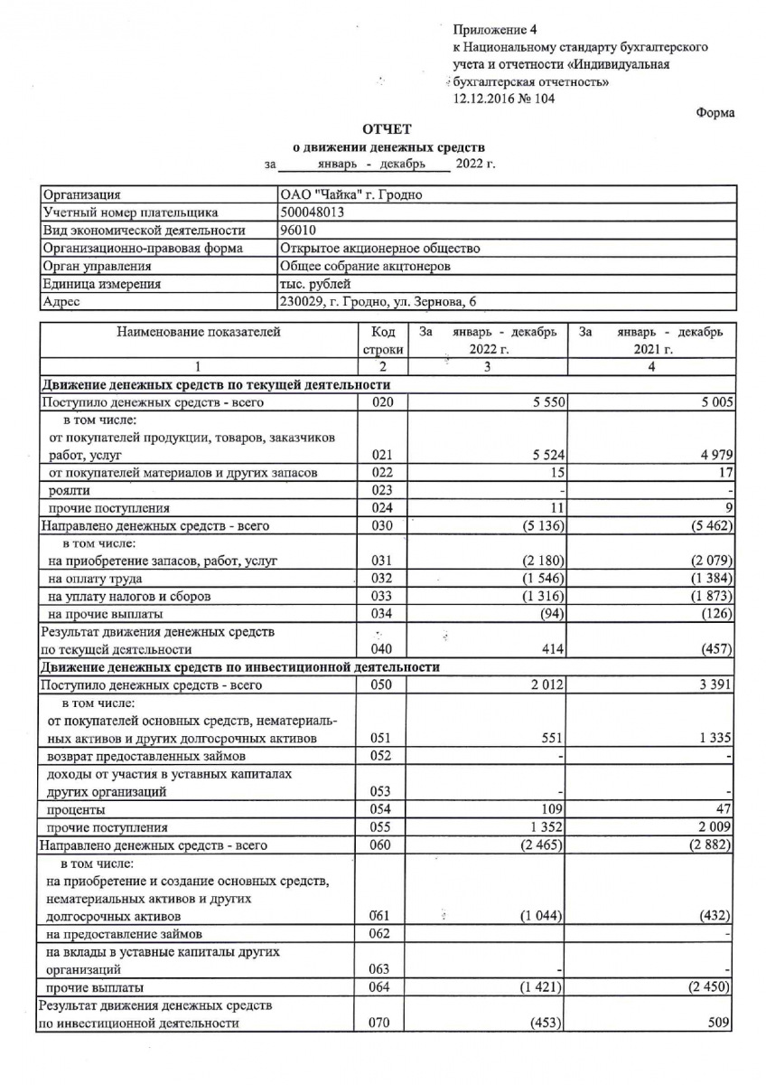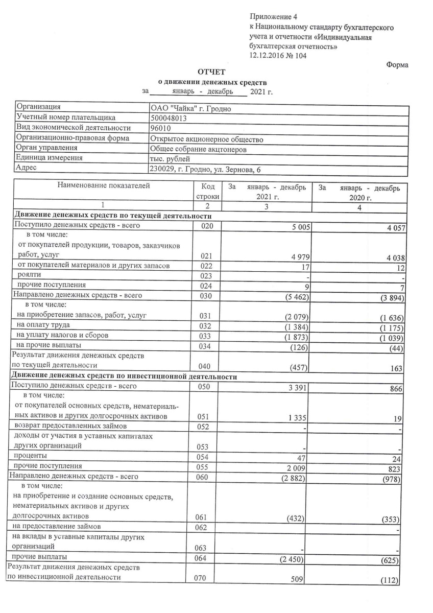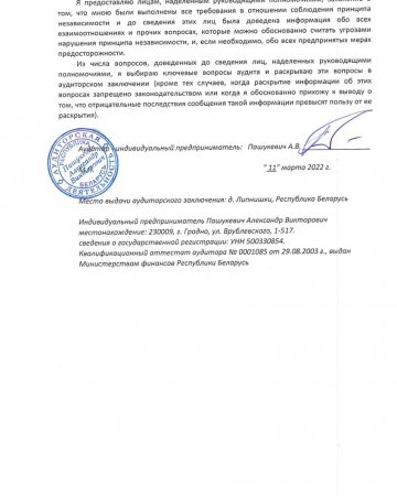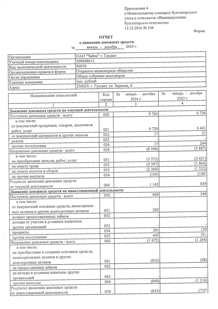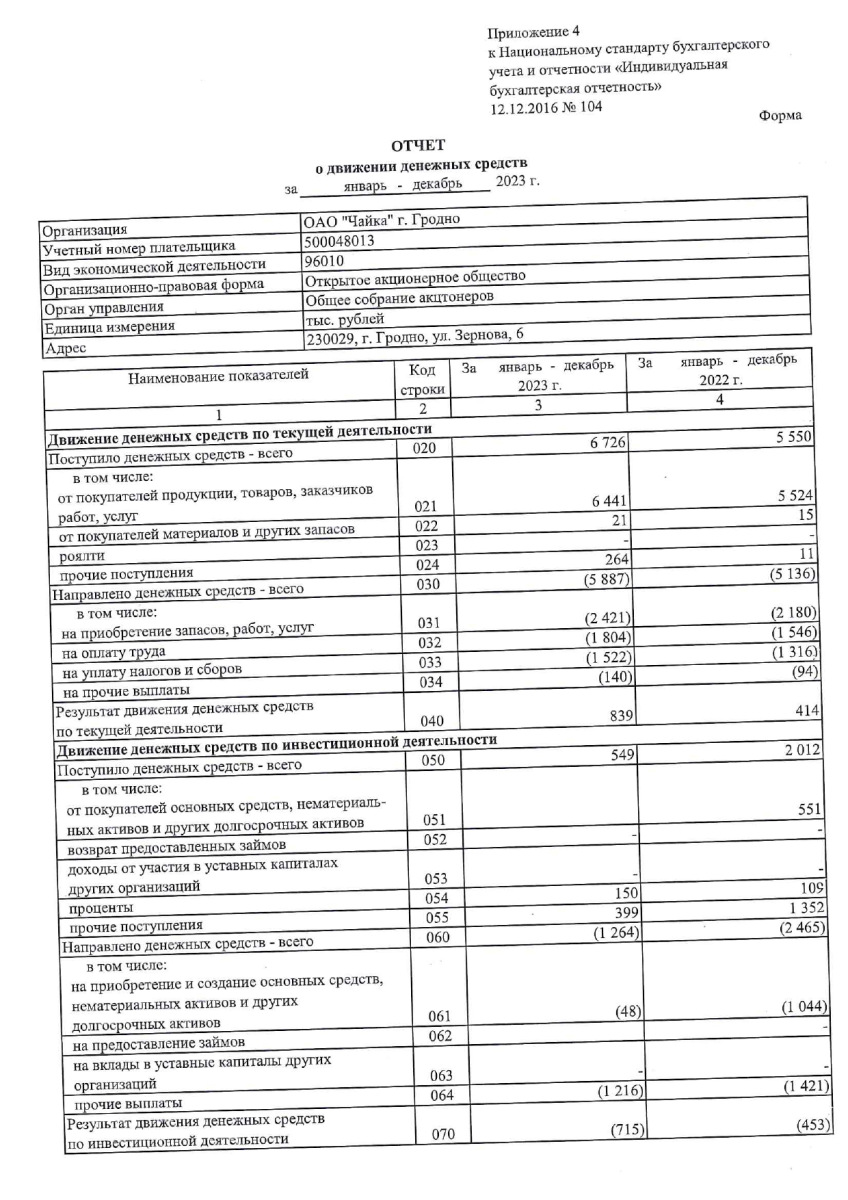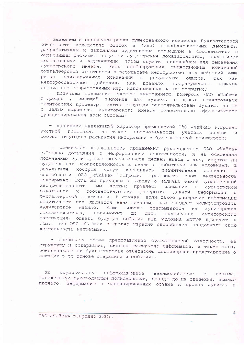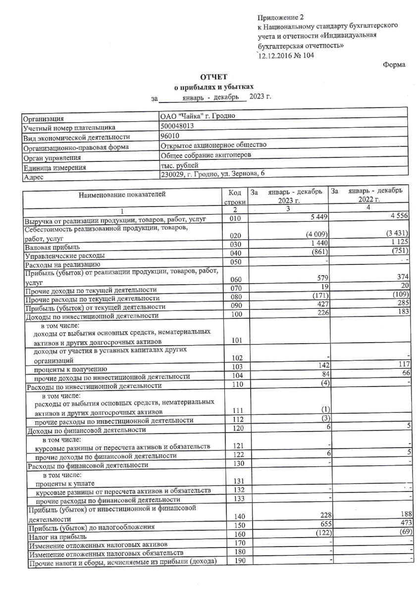 Информация для акционеров ОАО "Чайка" г. Гродно